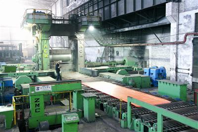 寶鈦集團(tuán)的三米三熱軋機(jī)正在軋制鈦板材。
