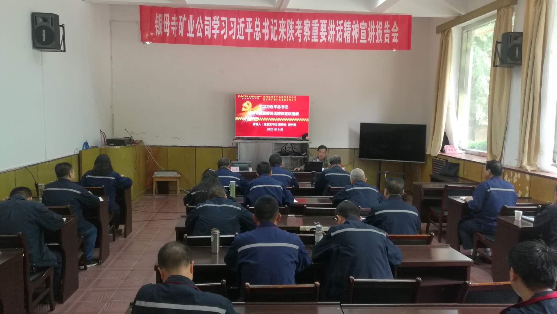 6月10日上午,銀母寺礦業(yè)黨總支書記、董事長秦寧昌向公司黨員領(lǐng)導(dǎo)干部,就習(xí)近平總書記來陜考察重要講話重要指示精神作主題宣講報告。