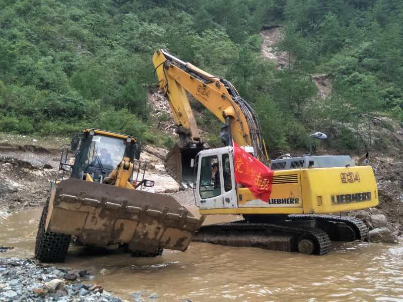 8月10日,沒(méi)有顧得上休整,王振克再次奔赴洛南麻坪援建搶修水毀道路。為了保證此次任務(wù)的安全順利完成,露天礦養(yǎng)路隊(duì)成立黨員突擊隊(duì),由王振克擔(dān)任隊(duì)長(zhǎng),負(fù)責(zé)麻坪援建搶險(xiǎn)。由于所修道路大多在兩山中間的峽谷地段,環(huán)境惡劣,期間經(jīng)常出現(xiàn)汛情預(yù)警,還時(shí)常下大雨。有的路面懸空,有的路段有塌方和泥石流,河道內(nèi)有暗流和深坑,還有很多水壩和沖溝,王振克在每天設(shè)備作業(yè)前或每修一段路前,都要提前判斷人員設(shè)備在大雨、塌方、泥石流等危險(xiǎn)狀況下的撤離路線和安全地點(diǎn)。有的路段需要墊幾米深的砂石,推近緩慢。有時(shí)一晚上大雨沖毀了前一天修的路段,第二天就及時(shí)補(bǔ)修。為了防止河水對(duì)所修道路的沖刷,挖河改道1000多米。由于遠(yuǎn)離礦區(qū),他們每天早晨7點(diǎn)出發(fā),傍晚才能結(jié)束一天的工作返回休息,克服了吃飯不便,通訊中斷等困難,爭(zhēng)分奪秒,加班加點(diǎn),沒(méi)有休息過(guò)一天,直到8月24日順利完成任務(wù)。