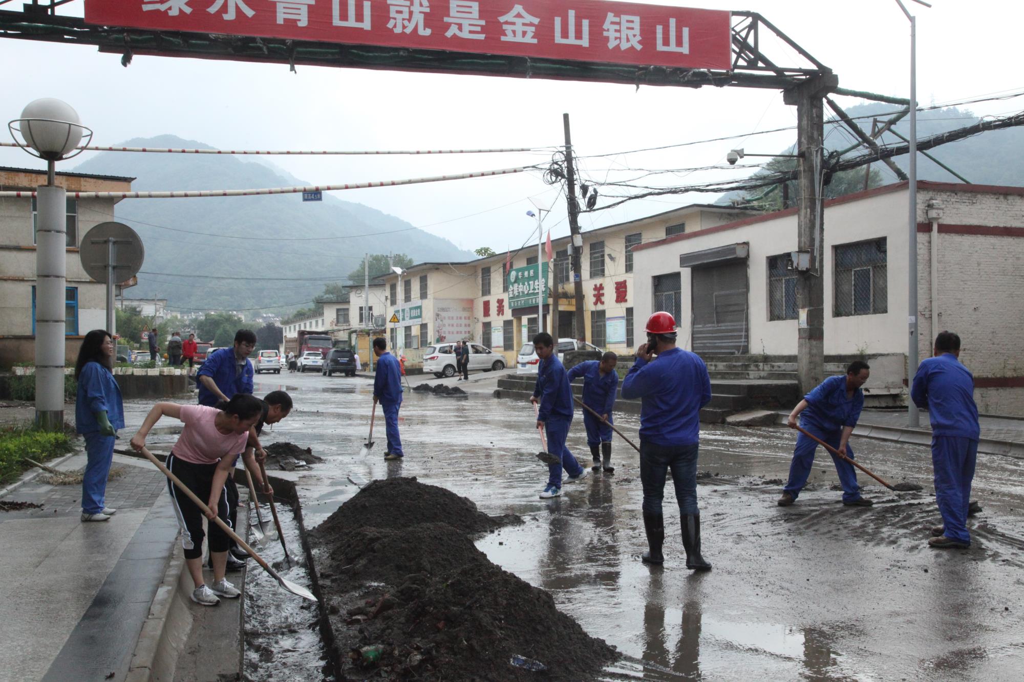 露天礦積極響應金鉬集團號召,在全員開展自救工作的同時,抽調骨干力量和設備,馳援受災最嚴重的地區(qū),展開對外援助工作。8月6日上午,在搶修石可至麻家砭道路中,露天礦抽調11臺工程機械和車輛,露天礦領導帶領100余人奔赴現(xiàn)場,他們克服持續(xù)降雨、河水漫漲、通訊不暢、運輸?shù)缆藩M窄、夜間照明不良等困難,歷經(jīng)63小時搶修水毀道路4公里, 8月8日晚23時道路通行,為金堆礦區(qū)恢復供水供電提供了保障。臨近的洛南縣麻坪鎮(zhèn)災情最為嚴重,隨后,露天礦又參與到搶修麻坪鎮(zhèn)通村道路工作中。為了爭取更多的搶修時間,救災人員自帶干糧,與災民同吃同住,歷時15天,搶修水毀道路7公里,倒運砂石量20000立方米,于8月25日12時恢復了至洛南縣的通村道路。
