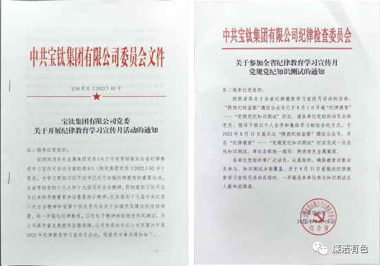 8月16日,寶鈦集團(tuán)紀(jì)委專門印發(fā)《關(guān)于參加全省紀(jì)律教育學(xué)習(xí)宣傳月黨規(guī)黨紀(jì)知識(shí)測(cè)試的通知》,要求各單位黨組織廣泛動(dòng)員、認(rèn)真組織,掀起學(xué)習(xí)黨規(guī)黨紀(jì)的熱潮,確保教育對(duì)象全員參與,知識(shí)測(cè)試全面覆蓋。