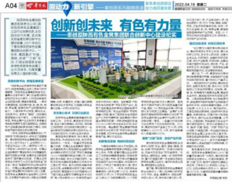 陜西有色金屬控股集團有限責任公司(簡稱陜西有色金屬集團)立足行業(yè)發(fā)展優(yōu)勢,主動回應時代所需,堅決落實我省秦創(chuàng)原創(chuàng)新平臺建設部署,2021年成立了秦創(chuàng)原陜西有色金屬集團聯(lián)合創(chuàng)新中心。一年來,集團通過“補鏈、強鏈、延鏈”“三鏈”互動,打造全國首家全鏈條綠色低碳有色金屬工業(yè)示范體系,為高質(zhì)量發(fā)展注入強勁新動能。