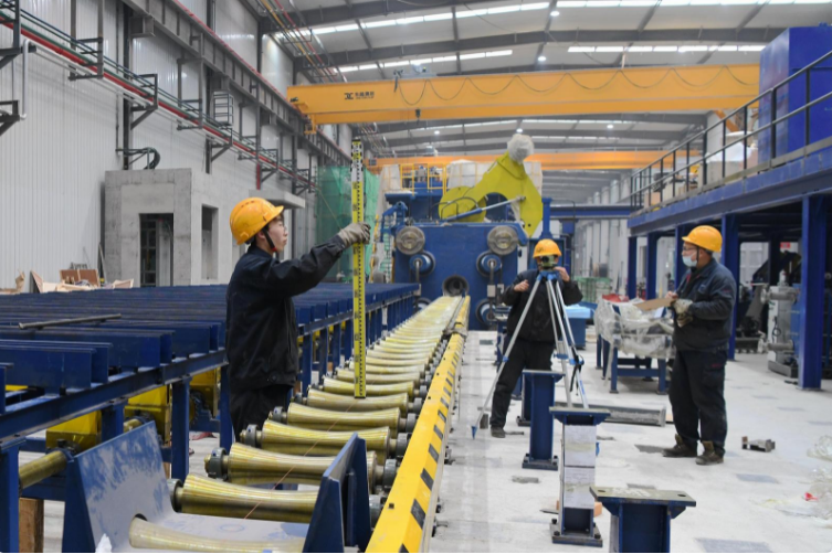 寶鈦集團(tuán)高品質(zhì)鈦錠、管材、型材生產(chǎn)線建設(shè)項(xiàng)目現(xiàn)場(chǎng),工人們正在安裝調(diào)試設(shè)備
