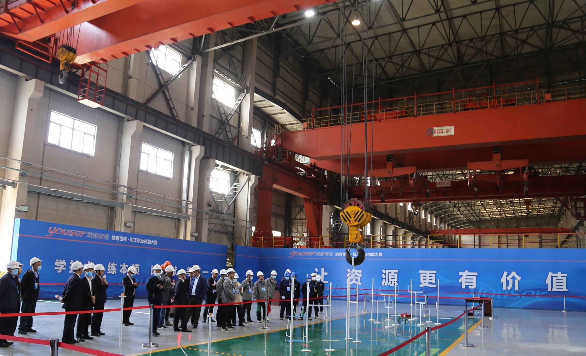 大賽由省機(jī)械冶金建材工會(huì)主辦,陜西有色金屬集團(tuán)承辦,陜西有色榆林新材料集團(tuán)協(xié)辦,屬省級(jí)二類大賽。大賽為期三天,設(shè)天車工、化驗(yàn)分析工(有色行業(yè))兩個(gè)工種,分理論考試和實(shí)際操作兩部分,分值比例為3:7。理論考試采用計(jì)算機(jī)答題,天車工理論考試由5000道題組成的題庫中隨機(jī)抽取160題作答,實(shí)操共設(shè)吊圓盤繞行穿框架定點(diǎn)投點(diǎn)、穩(wěn)鉤粘雞蛋及吊花枝插酒瓶3個(gè)項(xiàng)目;化驗(yàn)分析工(有色行業(yè))理論考試由8000道題組成的題庫中隨機(jī)抽取400題作答,實(shí)操共設(shè)EDTA標(biāo)準(zhǔn)溶液的配制、鄰二氮菲分光光度法測(cè)定微量鐵2個(gè)項(xiàng)目,均按照《國家職業(yè)技能標(biāo)準(zhǔn)》中規(guī)定的國家職業(yè)資格三級(jí) (高級(jí)工)技術(shù)大綱要求實(shí)施。