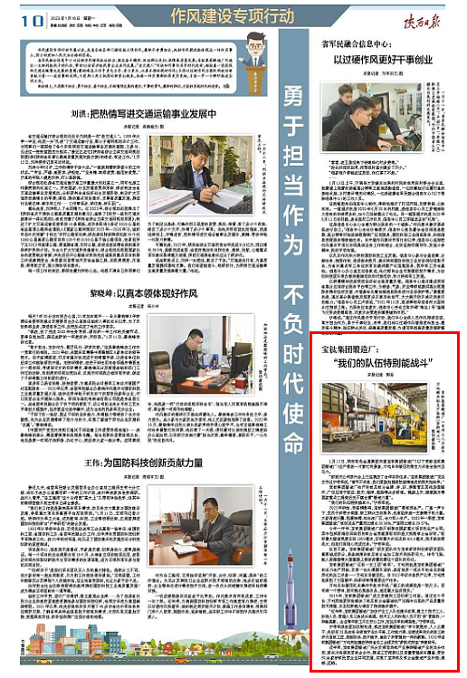 “前兩天公司職代會上已經(jīng)確定了全年目標(biāo)任務(wù)。”寶鈦集團鍛造廠黨總支書記寧偉軍說,“春節(jié)不休息,我們要換擋提速把疫情造成的損失搶回來?!?