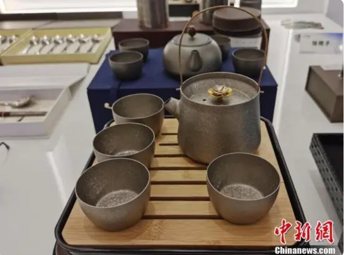 寶鈦集團展覽館內(nèi),用鈦制作的水壺、水杯。黨田野 攝