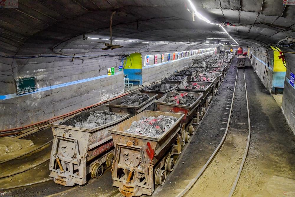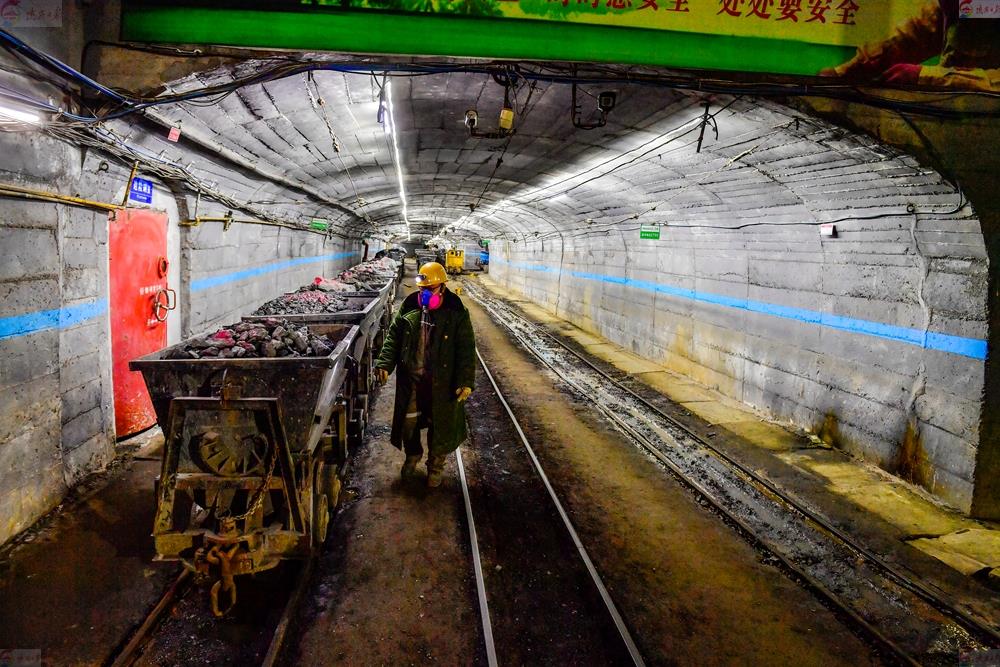 12月14日,在陜西震奧鼎盛礦業(yè)有限公司距主洞口4000米、深200多米的礦井內(nèi),重載車(chē)輛等待斜井提升作業(yè)。
