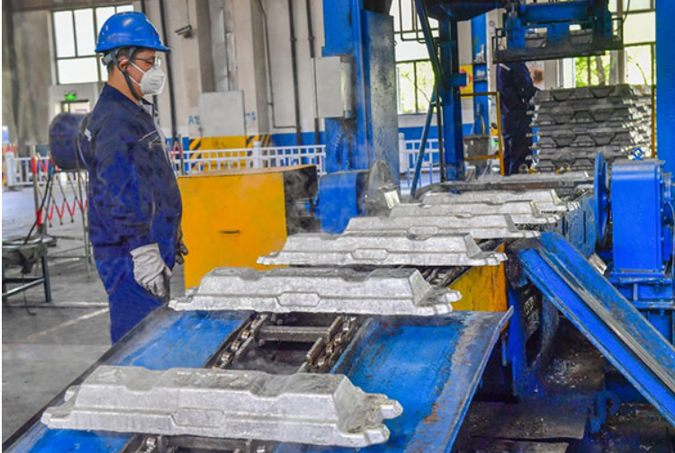 榆林新材料集團鑄造車間鑄造工正在查看鋁錠表觀質(zhì)量