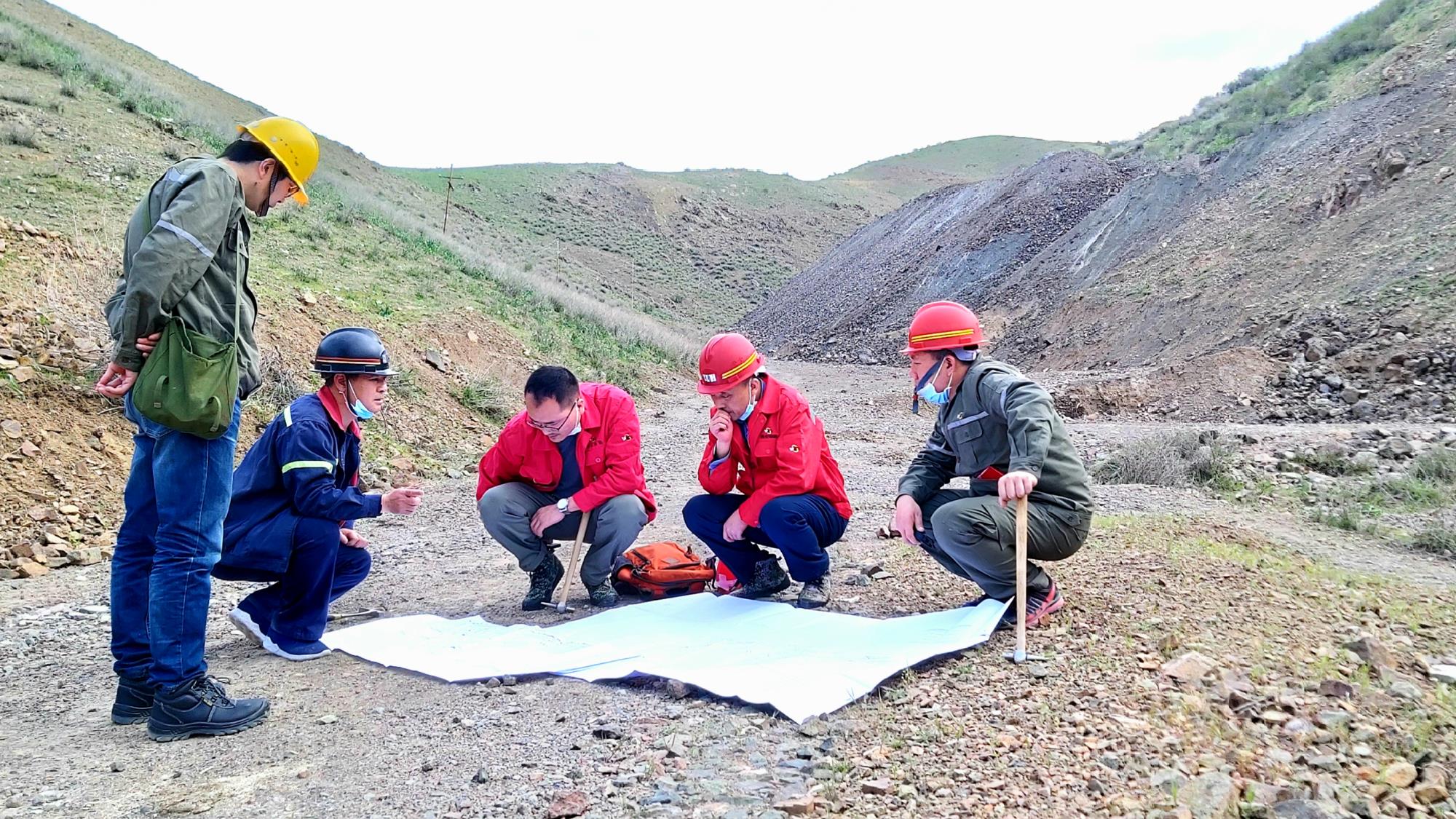 公司技術人員在塔吉克斯坦阿爾登-托普坎礦田進行現(xiàn)場踏勘研討