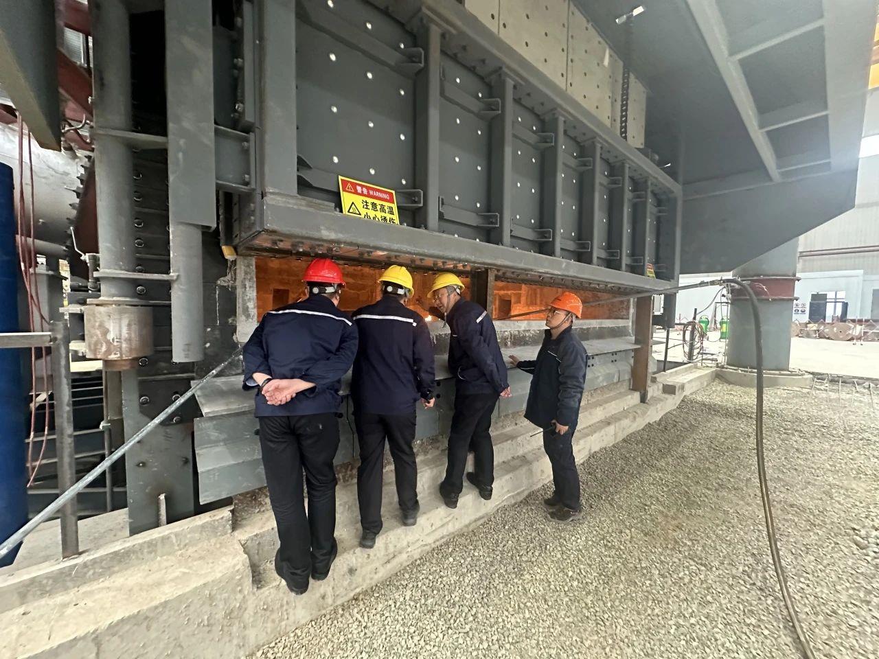 工作人員正在查看熔保爐組點火運行情況