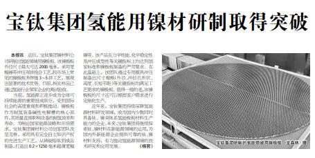 近年來,寶鈦集團(tuán)持續(xù)深耕氫能源材料研發(fā)領(lǐng)域,成為國內(nèi)少數(shù)同時(shí)具備鈦、鎳雙體系氫能極板材料生產(chǎn)能力的企業(yè)。未來,寶鈦集團(tuán)將繼續(xù)探索鈦、鎳材料在新能源領(lǐng)域的運(yùn)用,為國內(nèi)外新能源企業(yè)提供可靠的鈦、鎳材料支持,有力推動(dòng)氫能源領(lǐng)域的技術(shù)研究和應(yīng)用發(fā)展。