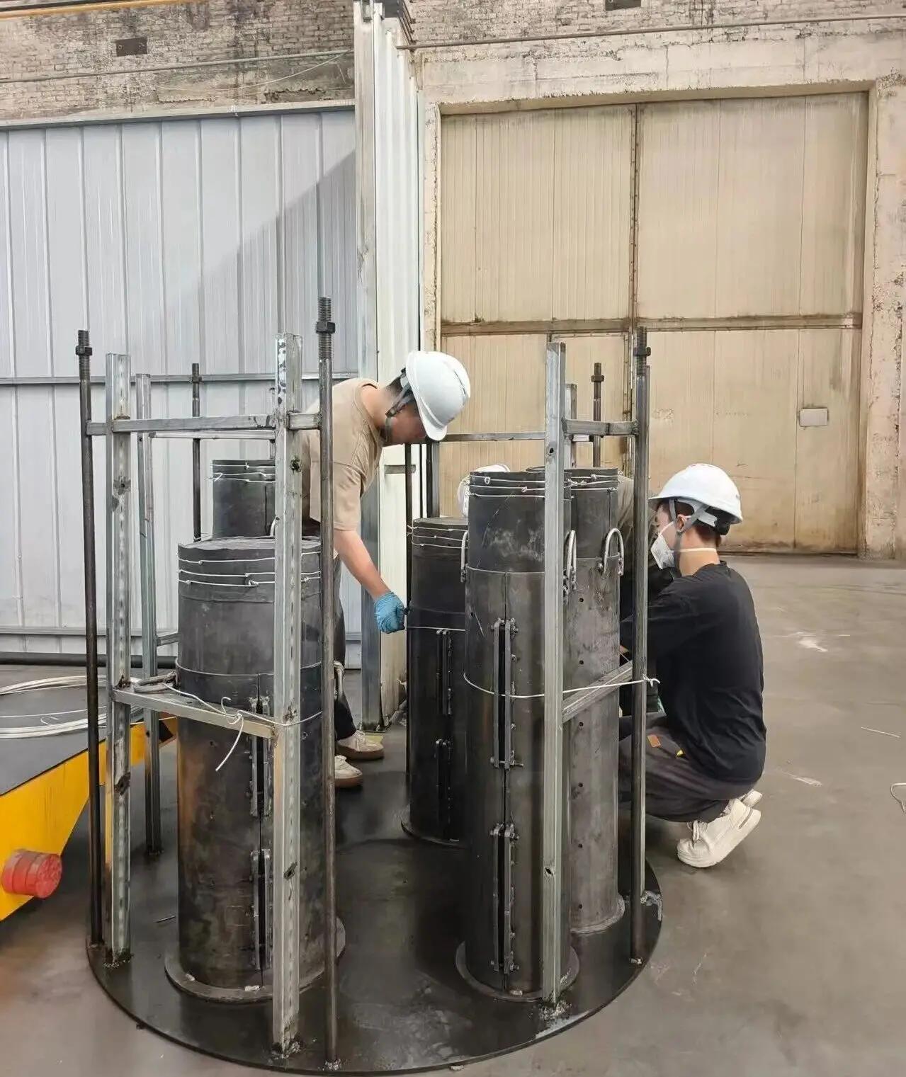 研發(fā)中心黨支部緊盯項(xiàng)目攻關(guān)各環(huán)節(jié),遇到大尺寸型材成型不穩(wěn)定、燒結(jié)參數(shù)難把控等“卡脖子”問題,第一時(shí)間組織專家開展專題研討會(huì),黨員骨干帶頭亮思路、獻(xiàn)方案。辦公桌上攤著圖紙報(bào)表,白板寫滿公式,這是該團(tuán)隊(duì)無數(shù)次交流的場景?!白鳛辄h員,必須啃下硬骨頭?!睂?shí)驗(yàn)室里,青年黨員汪澤瑾已連續(xù)工作十余個(gè)小時(shí),反復(fù)調(diào)試配方,筆記本上原料配比、燒結(jié)溫度記錄密密麻麻,鉛筆標(biāo)注的修改痕跡層層疊疊。生產(chǎn)車間內(nèi),“黨員先鋒崗”——職工趙永喆穿梭在設(shè)備間,輪班值守生產(chǎn)線,緊盯擠壓過程細(xì)節(jié),汗珠浸透工裝也渾然不覺。