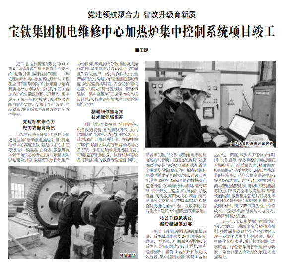 中國有色金屬報(bào):黨建領(lǐng)航聚合力 智改升級育新質(zhì) 寶鈦集團(tuán)機(jī)電維修中心加熱爐集中控制系統(tǒng)項(xiàng)目竣工
