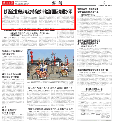 新華網(wǎng)、鳳凰網(wǎng)、陜西日?qǐng)?bào): 陜西企業(yè)光伏電池轉(zhuǎn)換效率達(dá)到國際先進(jìn)水平
