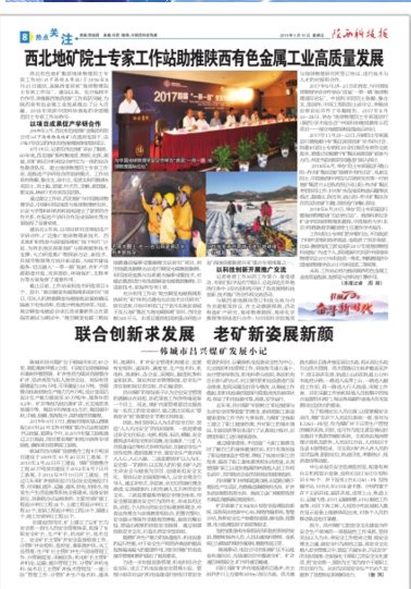 陜西科技報(bào):“西北地礦”院士專家工作站助推陜西有色金屬工業(yè)高質(zhì)量發(fā)展