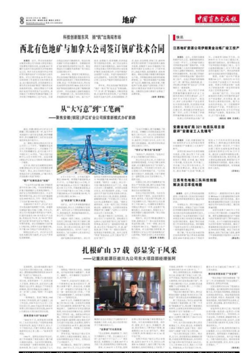 中國有色金屬報:西北有色地礦與加拿大公司簽訂釩礦技術(shù)合同