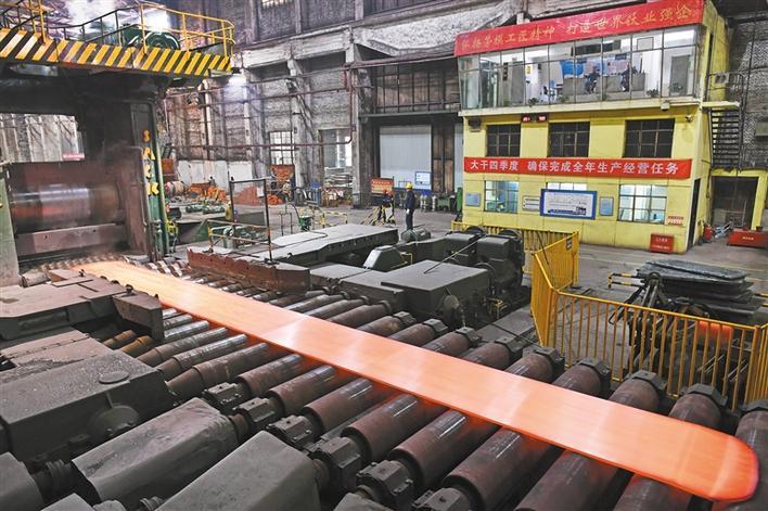 11月26日,工人在寶鈦集團寬厚板材料公司三米三熱軋生產(chǎn)線上作業(yè)。寶鈦集團有限公司是