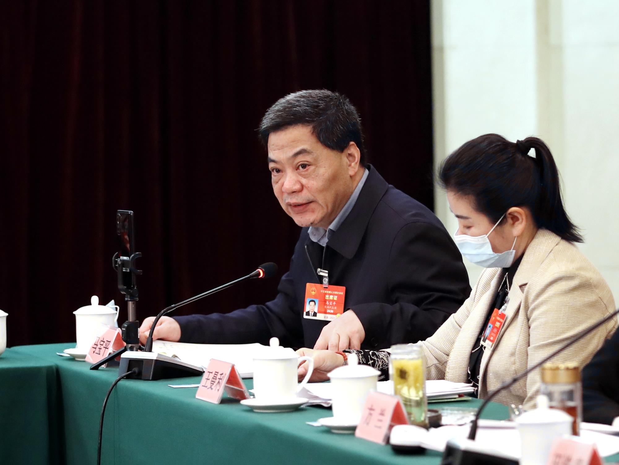 3月10日,全國人大代表馬寶平在京參加陜西代表團(tuán)分組討論。