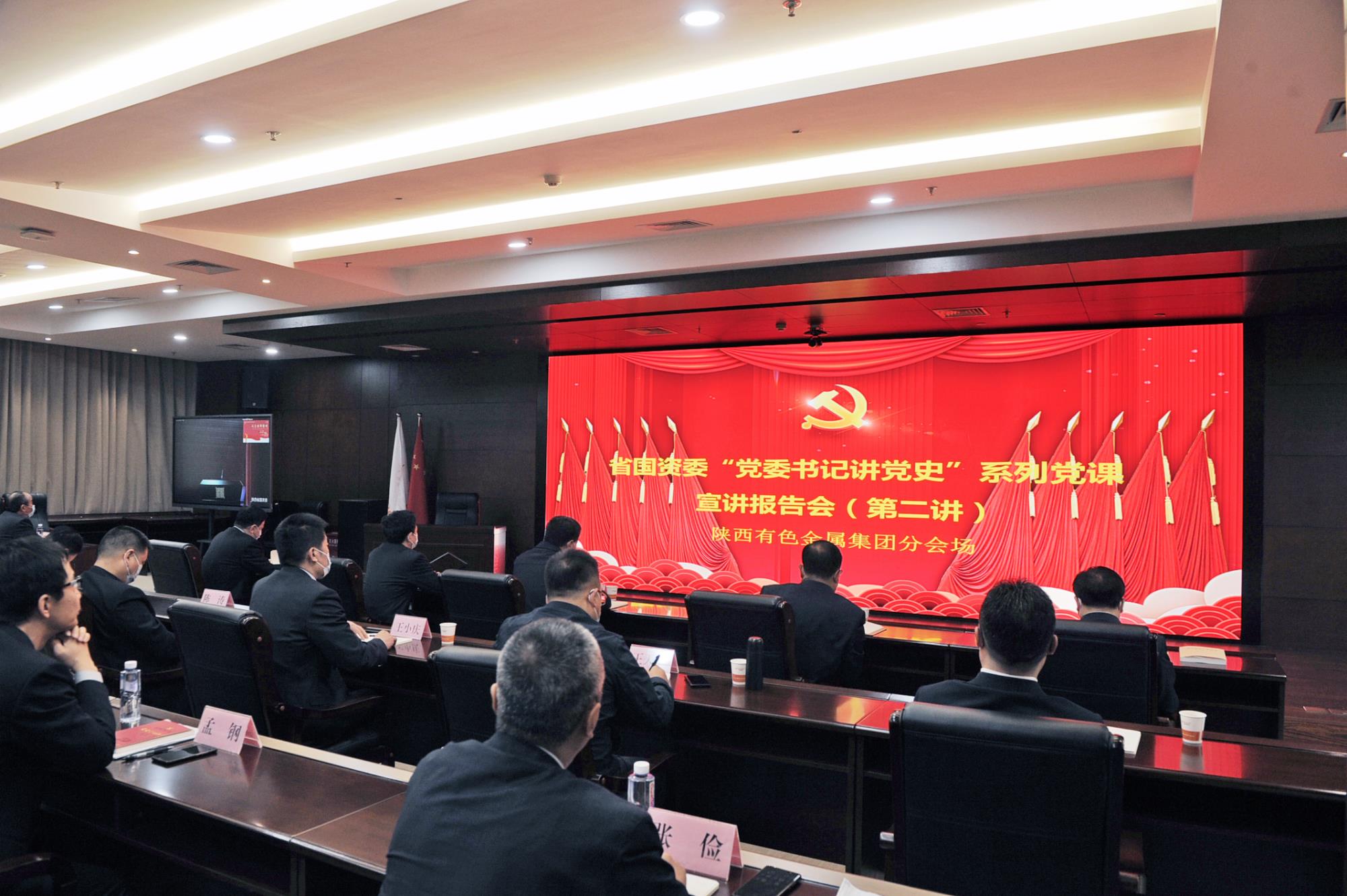聆聽(tīng)百年黨史,賡續(xù)紅色血脈。4月28日上午,省國(guó)資委“黨委書記講百年黨史”系列黨課宣講報(bào)告會(huì)第二講開講。省國(guó)資委黨委書記劉斌主持報(bào)告會(huì)。陜西有色金屬集團(tuán)黨委書記、董事長(zhǎng)馬寶平,黨委副書記、總經(jīng)理鄒武裝等領(lǐng)導(dǎo)班子成員,總部中層干部及部分權(quán)屬企業(yè)黨員代表,在集團(tuán)公司分會(huì)場(chǎng)聆聽(tīng)宣講。各權(quán)屬企業(yè)領(lǐng)導(dǎo)班子成員在各單位分會(huì)場(chǎng)參加報(bào)告會(huì)。