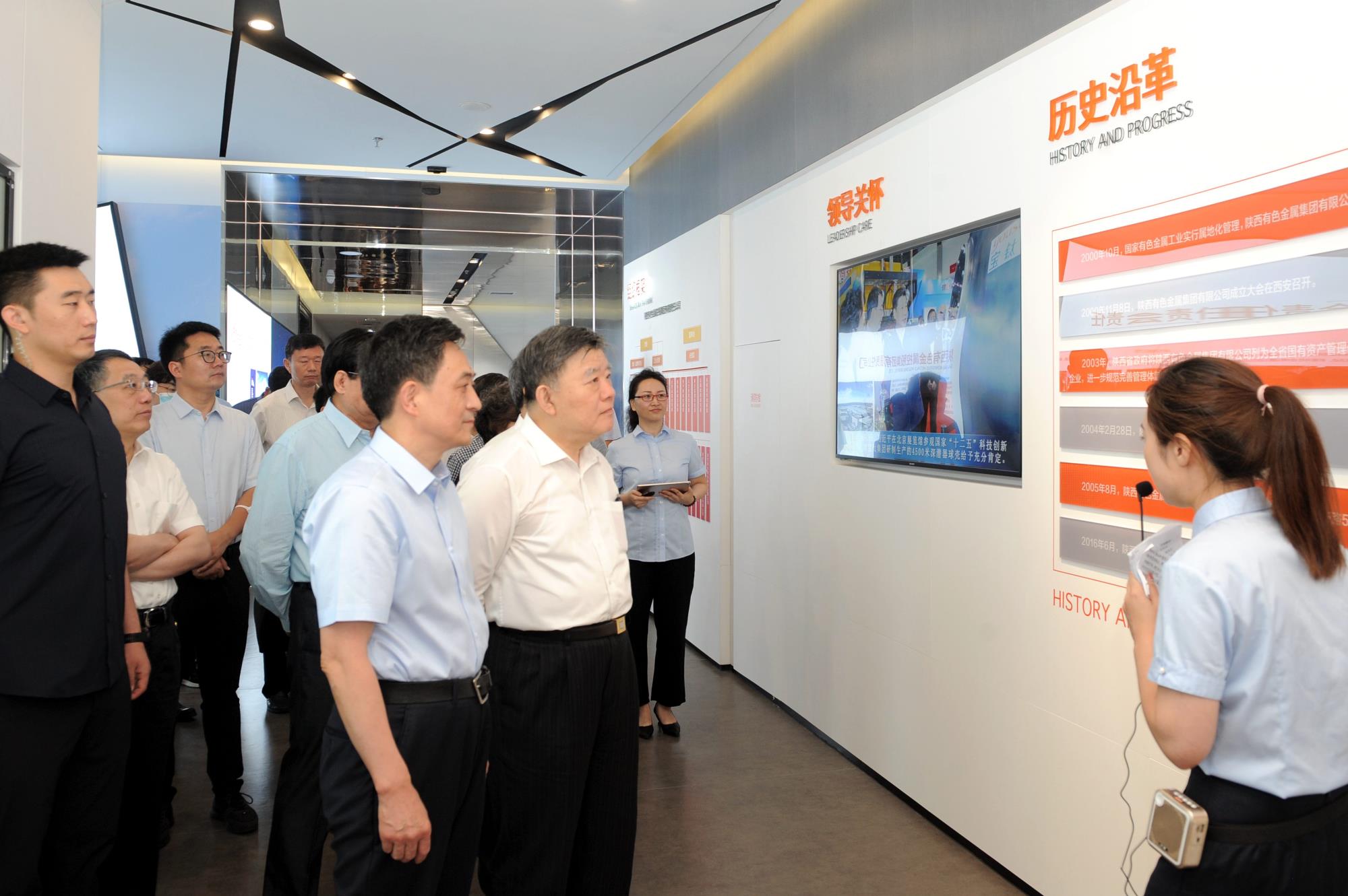 陳竺一行首先來到陜西有色金屬集團(tuán)展廳,觀看了企業(yè)宣傳片,聽取了集團(tuán)公司黨委副書記、總經(jīng)理鄒武裝有關(guān)集團(tuán)公司歷史沿革、組織架構(gòu)、產(chǎn)業(yè)板塊、綜合實(shí)力、科技創(chuàng)新、發(fā)展愿景、社會責(zé)任等情況介紹,并饒有興致地查看了萬米級深潛器鈦合金載人球艙、核反應(yīng)堆燃料包殼等創(chuàng)新產(chǎn)品模型。