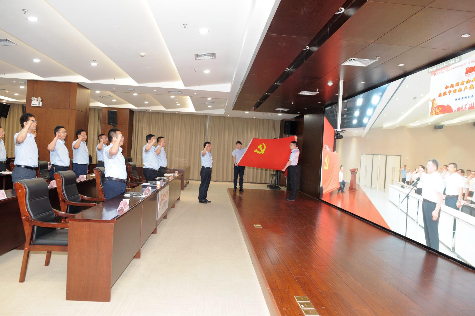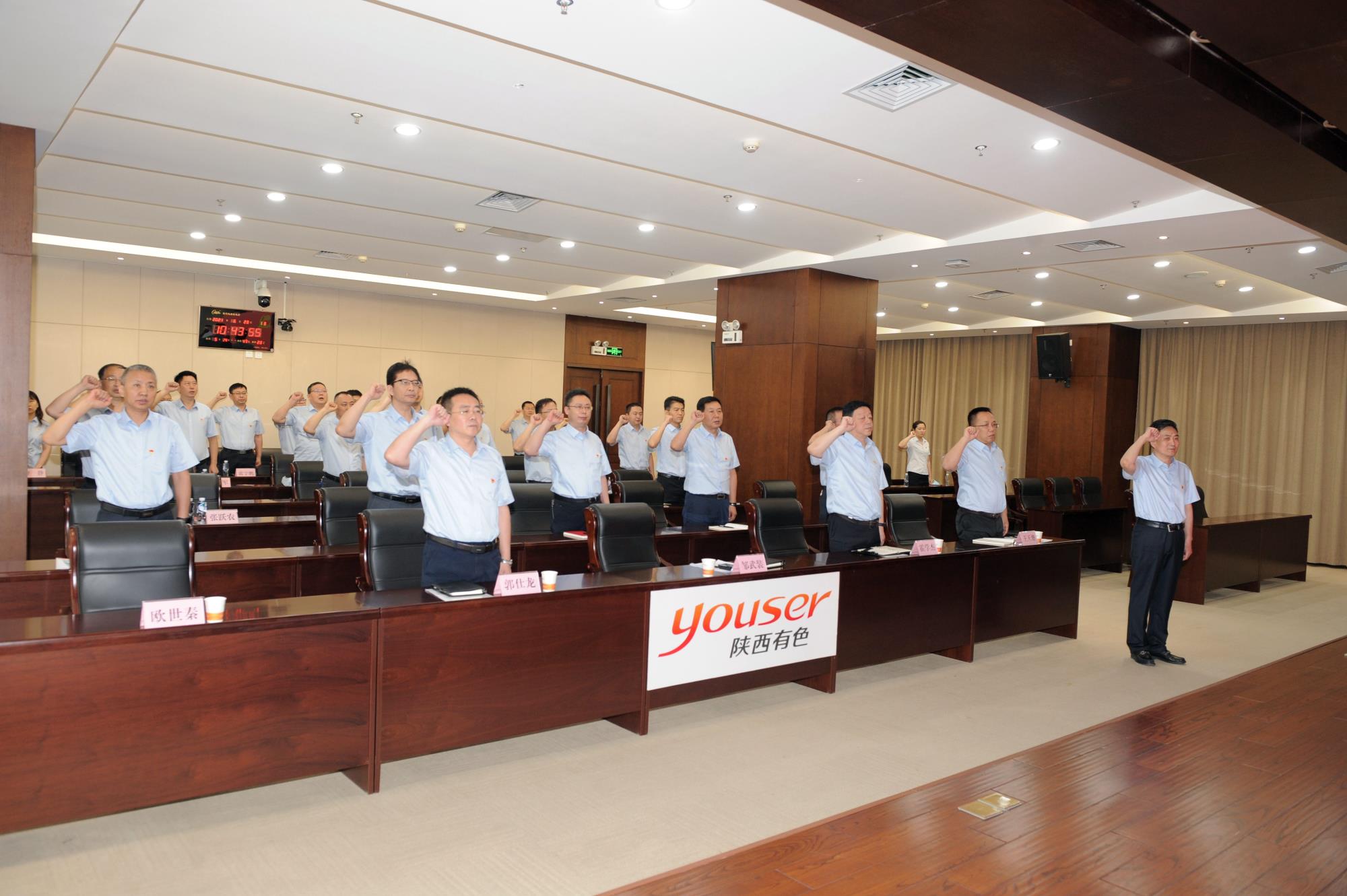 宣講報(bào)告結(jié)束后,面對(duì)鮮紅的黨旗,劉斌在主會(huì)場帶領(lǐng)全體參會(huì)黨員集體宣誓,重溫了入黨誓詞。與會(huì)同志在嘹亮的錚錚誓言中,進(jìn)一步堅(jiān)定理想信念,牢記初心使命。陜西有色金屬集團(tuán)黨委副書記、總經(jīng)理鄒武裝在集團(tuán)公司分會(huì)場領(lǐng)誓,集團(tuán)公司領(lǐng)導(dǎo)班子成員及總部中層以上干部進(jìn)行宣誓。