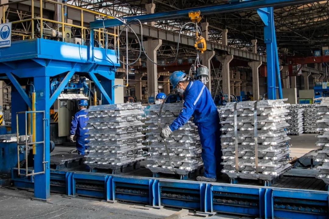 在陜西有色榆林新材料集團(tuán)鑄造車間,工人師傅正忙著對生產(chǎn)線上的鋁錠打捆。