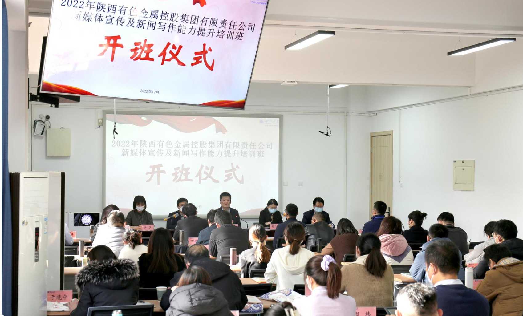 12月12日,陜西有色金屬控股集團(tuán)有限責(zé)任公司新媒體宣傳及新聞寫作能力提升培訓(xùn)班在西北大學(xué)中華文化干部學(xué)院開班。本次培訓(xùn)班由陜西有色金屬控股集團(tuán)有限責(zé)任公司、陜西省新聞工作者協(xié)會(huì)主辦,群眾新聞網(wǎng)、西北大學(xué)中華文化干部學(xué)院承辦。陜西有色金屬控股集團(tuán)有限責(zé)任公司黨委副書記、董事、工會(huì)主席王小慶出席并講話,陜西省新聞工作者協(xié)會(huì)秘書長周凱致辭,西北大學(xué)中華文化干部學(xué)院常務(wù)副院長孫二麗出席。