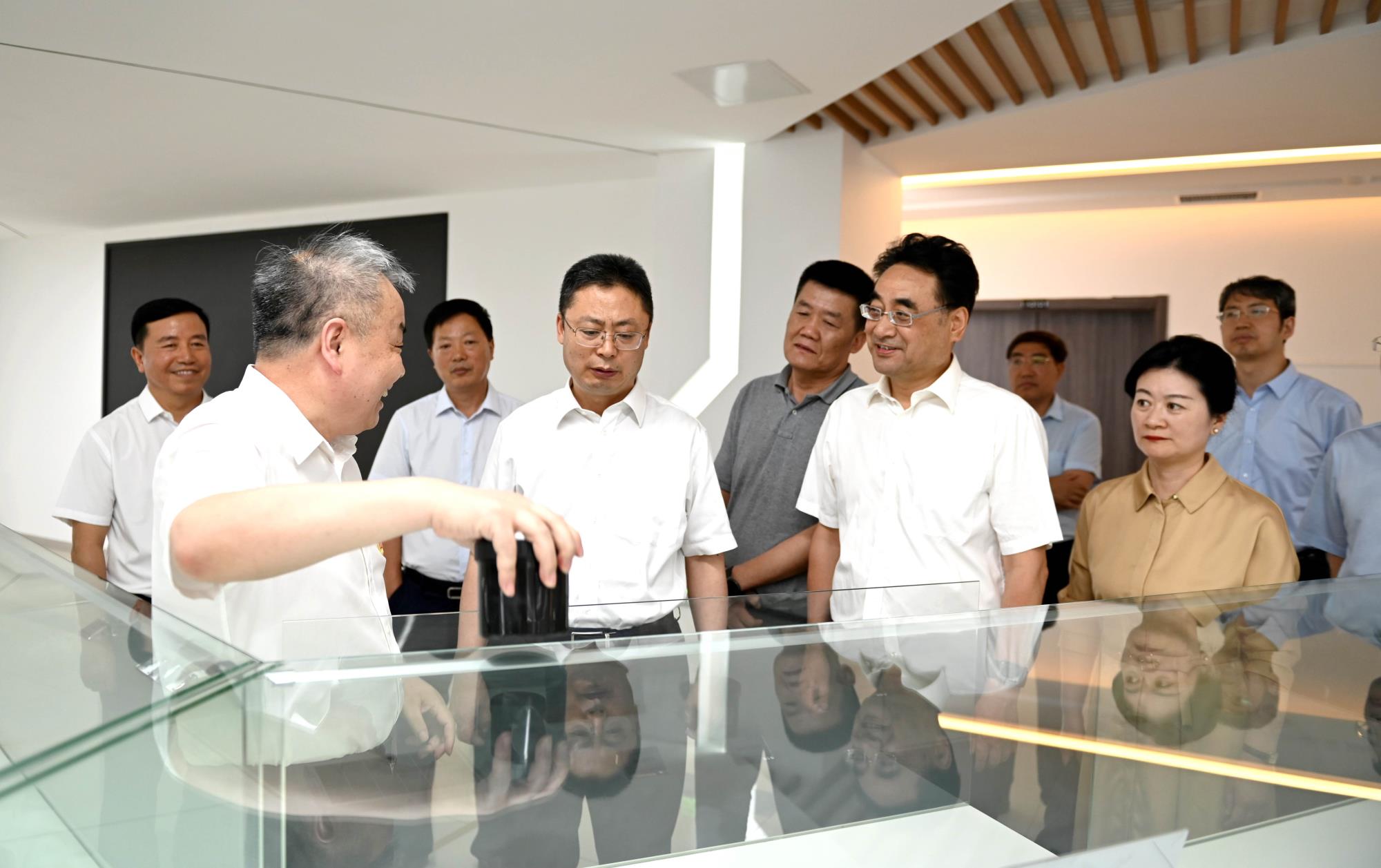 在產(chǎn)品展柜前,琳瑯滿目的超細(xì)銀粉、超薄金片、高純銀帶等產(chǎn)品吸引大家駐足參觀。吳群英同西安匯創(chuàng)公司負(fù)責(zé)人深入交談,詳細(xì)詢問(wèn)科技創(chuàng)新、產(chǎn)品研發(fā)、技術(shù)突破、市場(chǎng)動(dòng)能、節(jié)能環(huán)保等情況,勉勵(lì)公司要憑借在貴金屬新材料研發(fā)、貴金屬增材制造和智能制造等方面的特色優(yōu)勢(shì),延伸產(chǎn)業(yè)鏈、提升價(jià)值鏈,促進(jìn)產(chǎn)業(yè)向高端化、智能化、綠色化方向發(fā)展,構(gòu)建產(chǎn)業(yè)新體系。