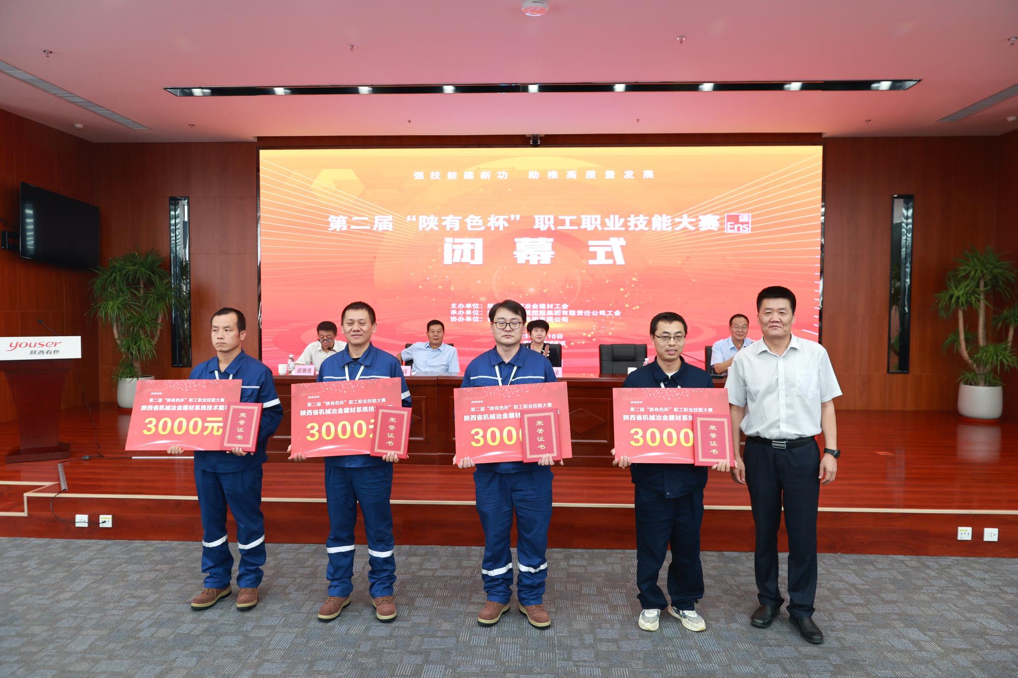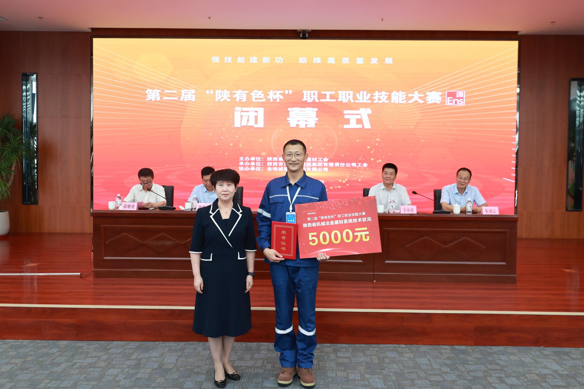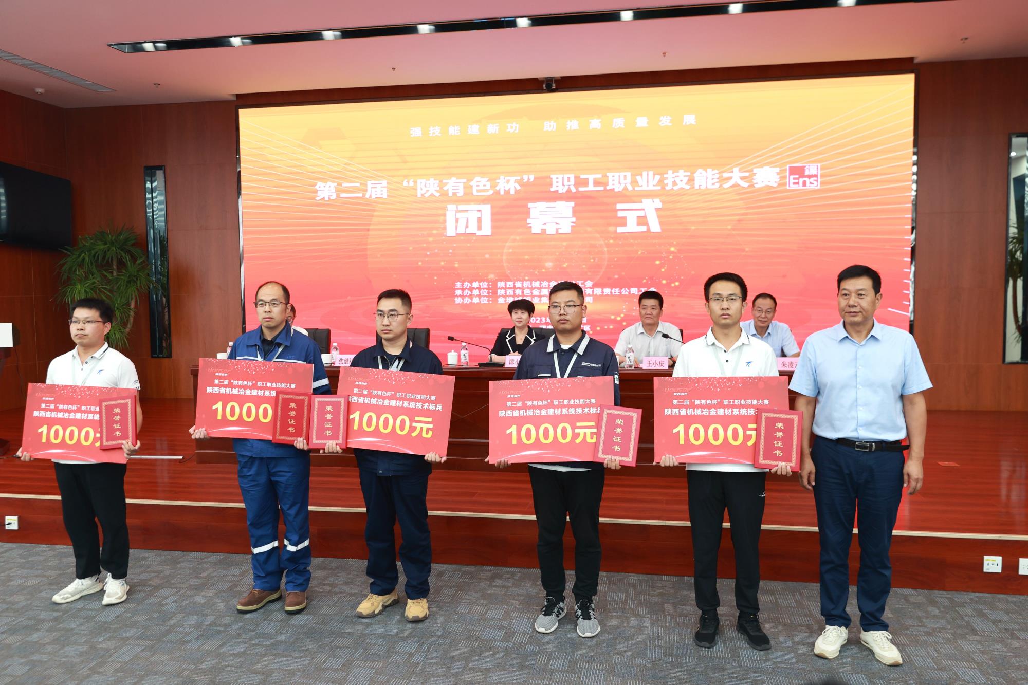 省機械冶金建材工會主席譚小榮,陜西有色金屬集團黨委副書記、董事、工會主席王小慶,工會常務(wù)副主席張繼祥,人力資源培訓部經(jīng)理、大賽總裁判長王學慶,金鉬集團黨委副書記朱凌云出席閉幕式。省機械冶金建材工會二級調(diào)研員薛繼虎主持閉幕式,并宣布第二屆“陜有色杯”職工職業(yè)技能大賽閉幕!