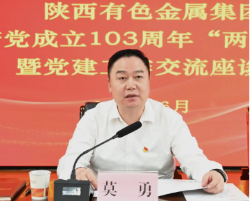 為慶祝中國共產(chǎn)黨成立103周年,弘揚偉大建黨精神,6月28日,陜西有色金屬集團召開慶祝中國共產(chǎn)黨成立103周年“兩優(yōu)一先”表彰會議暨黨建工作交流座談會。集團公司黨委副書記、董事、總經(jīng)理莫勇出席會議并講話,黨委副書記、董事、工會主席王小慶,省紀委監(jiān)委駐陜西有色金屬集團紀檢監(jiān)察組組長、黨委委員、紀委書記李金濤出席會議,黨委副書記郭仕龍主持會議。