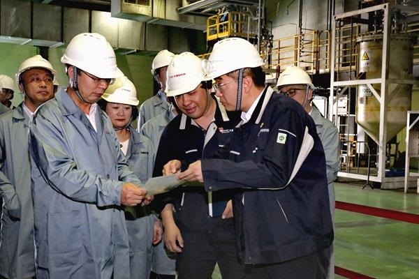 吳群英一行深入二期2.5萬噸電子級粒狀多晶硅產(chǎn)業(yè)升級項目建設(shè)現(xiàn)場,詳細詢問了項目進展情況;在硅烷充裝、粒狀硅和超純硅生產(chǎn)現(xiàn)場,仔細了解了生產(chǎn)工藝、技術(shù)裝備以及產(chǎn)品質(zhì)量、應(yīng)用領(lǐng)域等情況。
