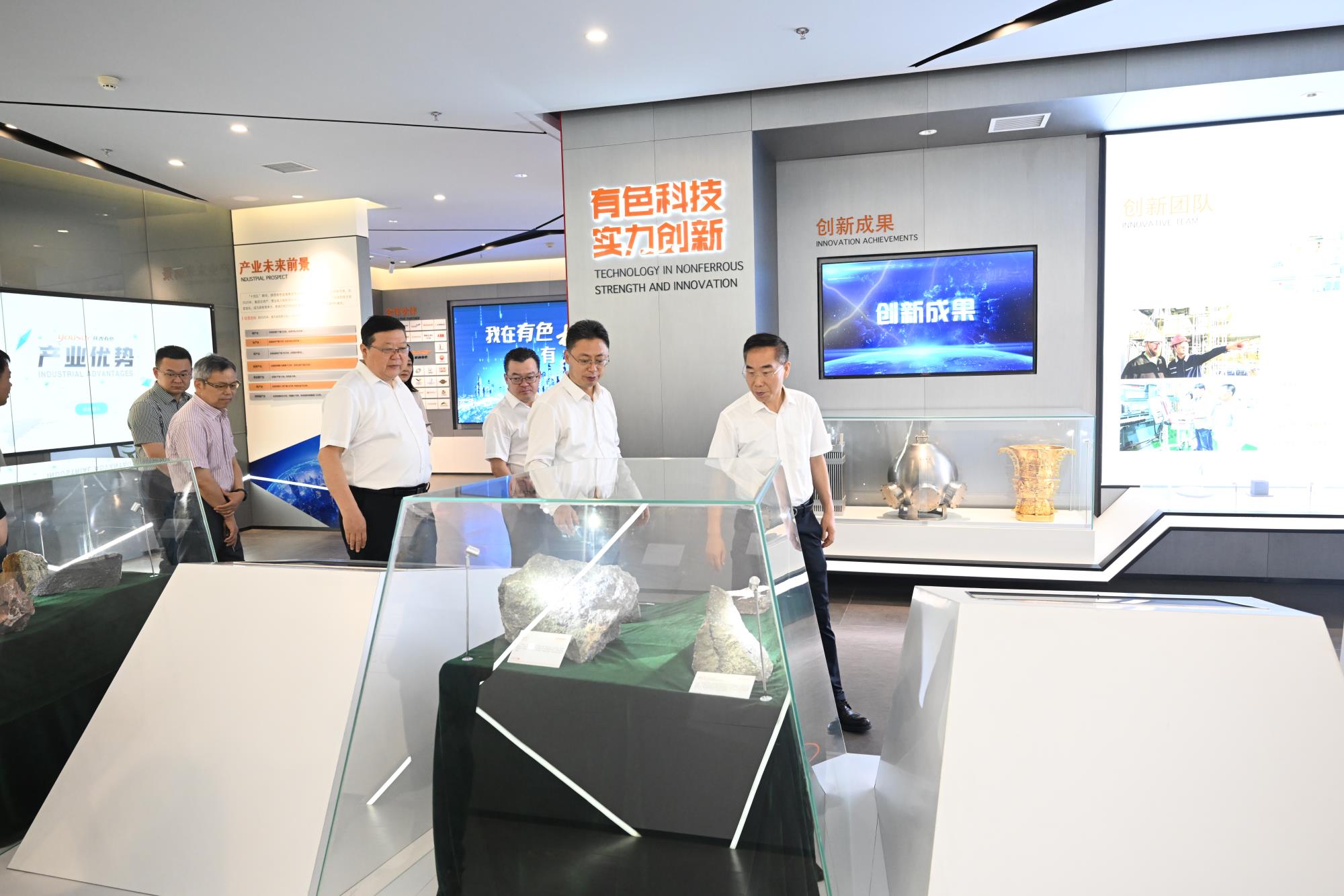 會(huì)談前,徐衛(wèi)林一行在吳群英、蘇旭盛的陪同下參觀了陜西有色金屬集團(tuán)展廳。