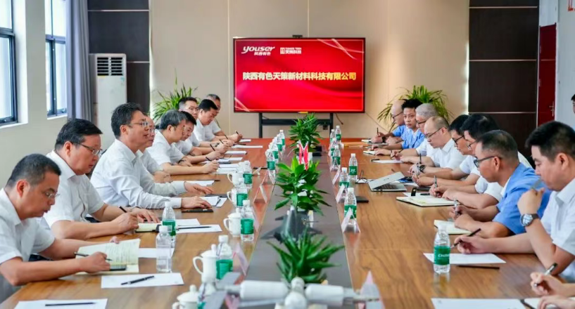 7月10日,陜西有色天策新材料科技有限公司揭牌儀式在銅川市耀州區(qū)董家河工業(yè)園舉行。陜西有色金屬集團(tuán)黨委書(shū)記、董事長(zhǎng)吳群英,耀州區(qū)委書(shū)記張嶠,區(qū)委副書(shū)記、區(qū)長(zhǎng)高崗共同揭牌。集團(tuán)公司黨委委員、副總經(jīng)理黃忠良主持揭牌儀式。