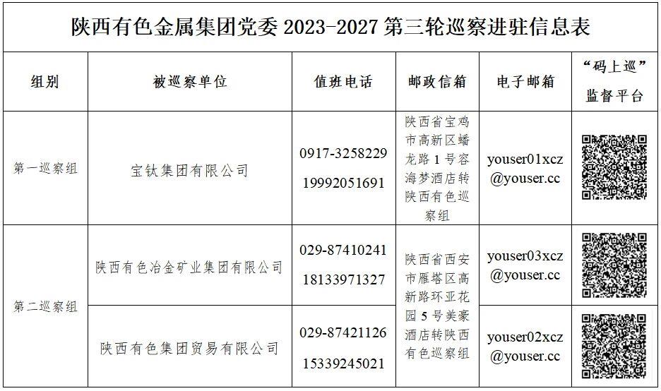 陜西有色金屬集團(tuán)黨委2023—2027第三輪巡察近日完成進(jìn)駐,根據(jù)集團(tuán)黨委統(tǒng)一部署,本輪巡察共派出2個(gè)巡察組,分別對(duì)寶鈦集團(tuán)黨委和冶礦集團(tuán)黨委、貿(mào)易公司黨委開(kāi)展常規(guī)巡察。