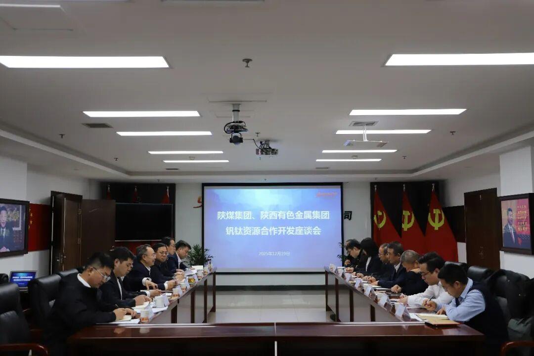 12月19日,陜西有色金屬集團(tuán)黨委委員、副總經(jīng)理黃忠良與陜煤集團(tuán)副總經(jīng)理杜平一行在冶礦集團(tuán)座談,圍繞釩鈦資源開發(fā)利用等領(lǐng)域深化合作展開交流。冶礦集團(tuán)黨委書記、董事長、總經(jīng)理何創(chuàng)民參加會(huì)議。