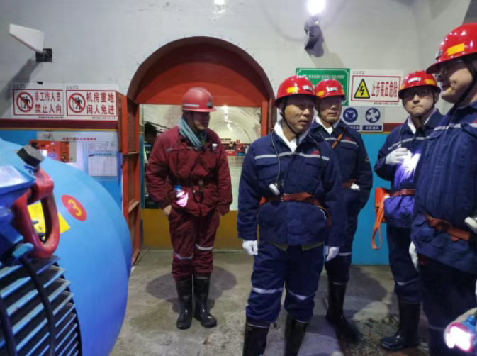 趙黎明一行首先來到礦調度指揮中心,通過井下人員定位系統(tǒng)、瓦斯實時監(jiān)測平臺,詳細了解井下作業(yè)人員分布、有害氣體濃度變化等關鍵安全數(shù)據,現(xiàn)場抽查了應急值守臺賬。隨后深入井下,對運輸系統(tǒng)、中央水泵房、中央變電所、采掘工作面等核心作業(yè)區(qū)域進行實地檢查,重點查看了設備運行、頂板支護、通風管理及應急物資儲備情況,詢問了采掘進度、備采面籌備及災害治理措施落實情況。