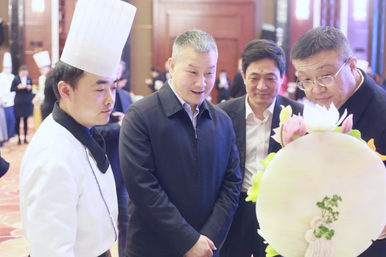 “同心同行 歡樂三八”活動分為酒店員工技能觀賞與體驗交流。女干部職工們興致勃勃地觀看了調(diào)酒、中西廚刀工展示、中西式擺臺、客房鋪床表演、折疊客衣等。體驗項目分20人一組分組進行,項目有中式面點包包子、西施面點做蛋糕、客房布草折花、茶藝等,大家親手操作學(xué)習(xí),感受了體驗的樂趣。