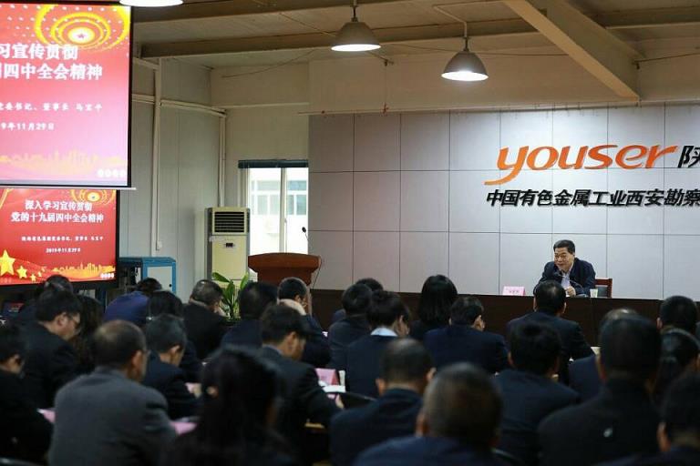11月29日下午,陜西有色集團黨委書記、董事長馬寶平到權(quán)屬企業(yè)西安勘察院宣講黨的十九屆四中全會精神。