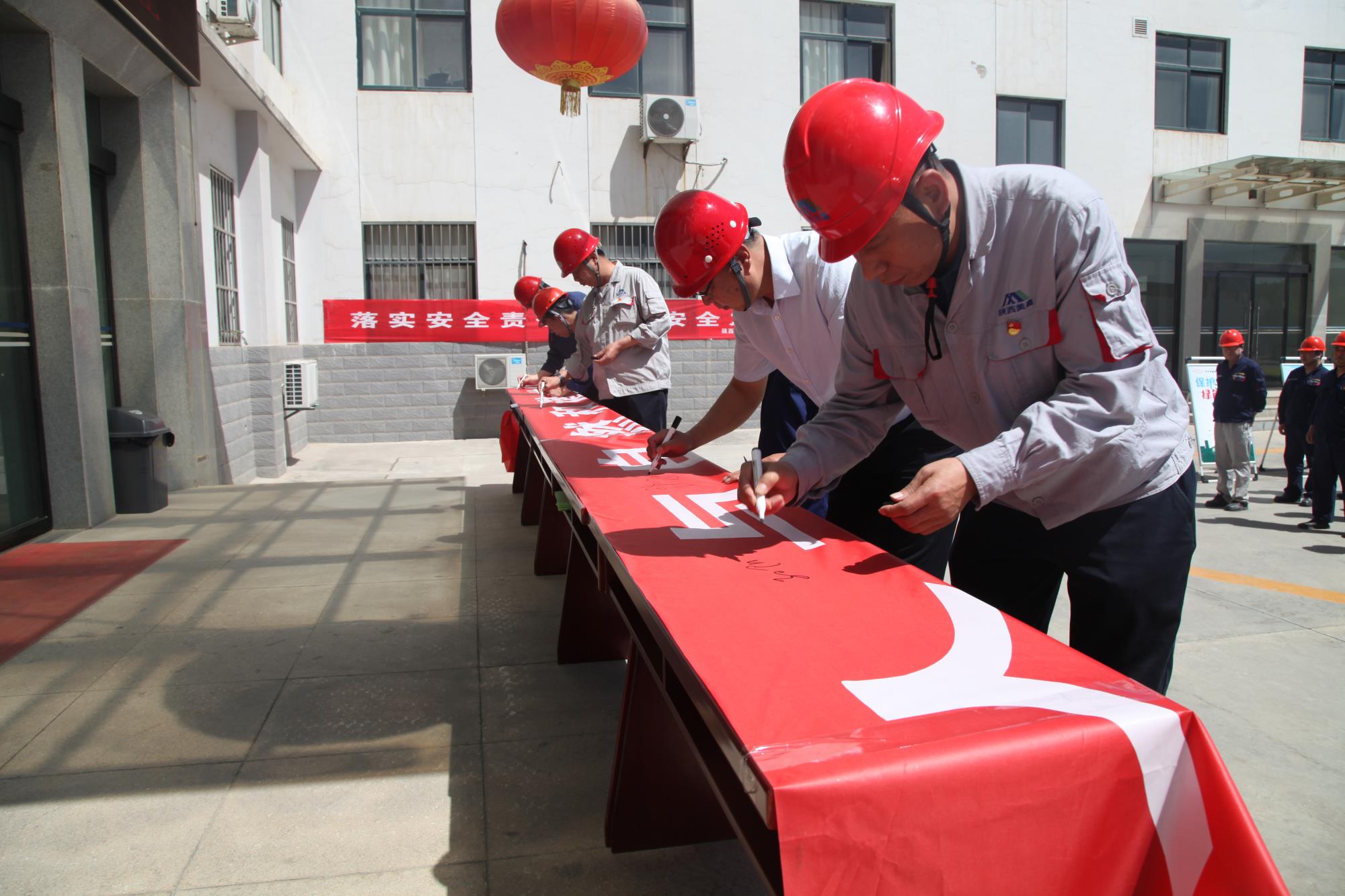 儀式結(jié)束后,與會全體職工在“人與自然和諧共生”宣傳橫幅上簽字并現(xiàn)場觀看了環(huán)保宣傳展板。