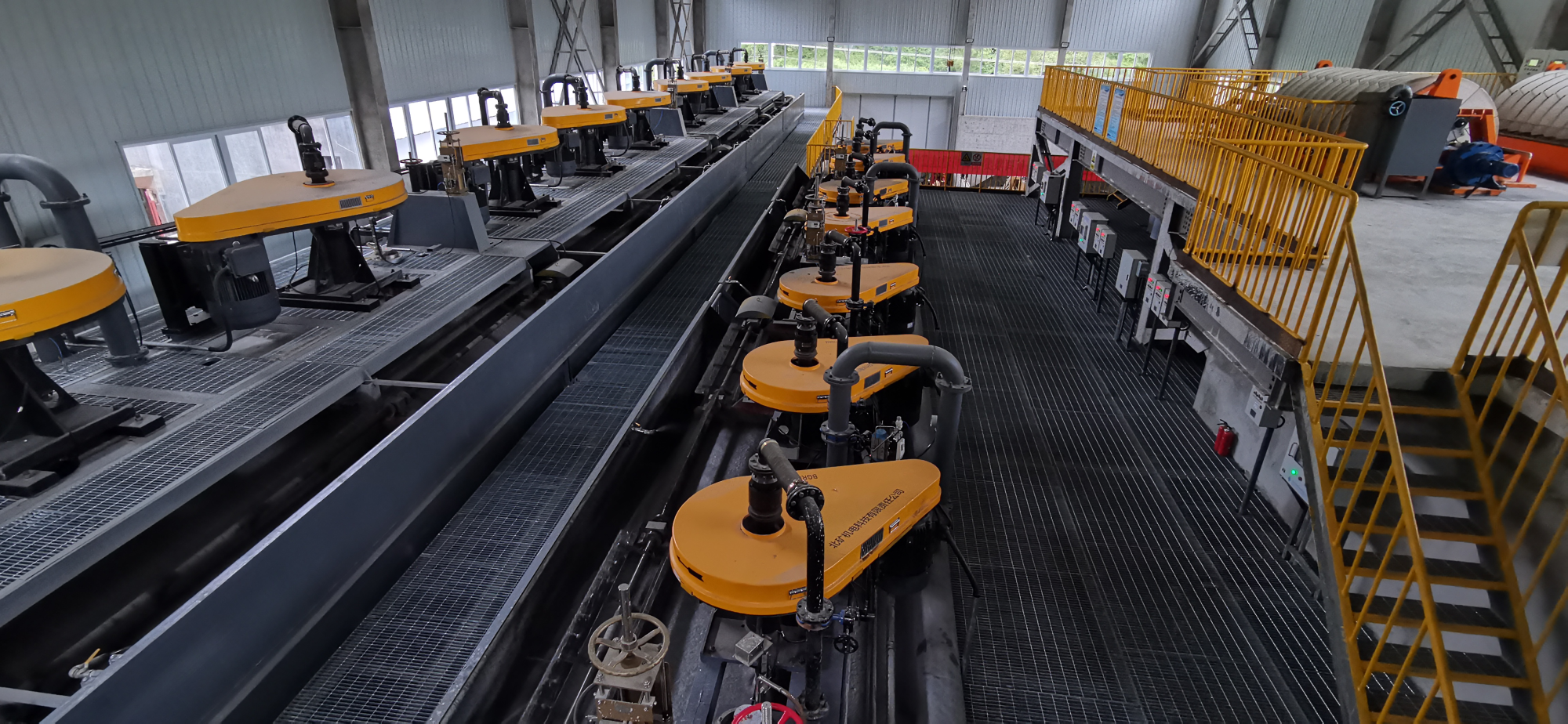 項目選礦硬件系統(tǒng)達(dá)到行業(yè)一流。本次選礦工藝生產(chǎn)線采用了18臺國內(nèi)領(lǐng)先的充氣式浮選機(jī),具有空氣分散好、磨損程度低、液面相對穩(wěn)定等優(yōu)點,整個設(shè)備系統(tǒng)更加安全,使用壽命大幅延長。采用的2臺陶瓷過濾機(jī)自動化程度高、生產(chǎn)連續(xù)性好、濾餅水分低,可很好的滿足配套需要。采用的1套深錐高效濃縮機(jī)可在機(jī)體內(nèi)部駐留高達(dá)數(shù)米的礦漿泥床,經(jīng)過添加絮凝劑加速沉降,最后達(dá)到固液有效分離。帶料試車數(shù)據(jù)顯示,選礦工藝升級后,綜合回收率達(dá)到了90%左右,節(jié)能降碳效果良好。