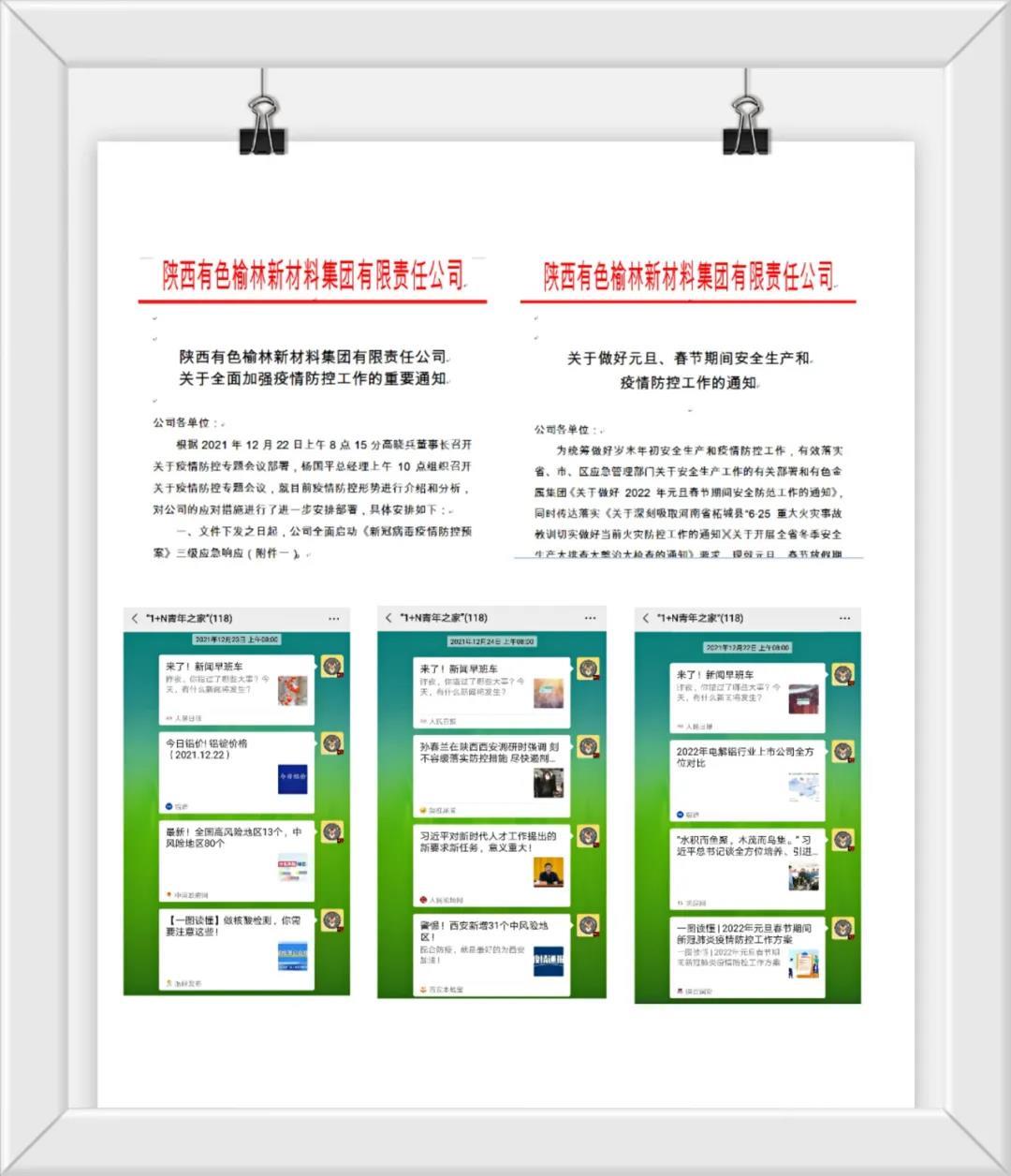 當(dāng)前,我省疫情防控形勢(shì)依然嚴(yán)峻復(fù)雜,防控工作正處于極其重要的關(guān)鍵期。在陜西有色金屬集團(tuán)黨委的堅(jiān)強(qiáng)領(lǐng)導(dǎo)下,榆林新材料集團(tuán)上下萬眾一心、眾志成城、堅(jiān)定信心、科學(xué)防治,堅(jiān)決打贏疫情防控這場(chǎng)硬仗?!包h有號(hào)召,團(tuán)有行動(dòng)”。新材料集團(tuán)團(tuán)委深入貫徹公司黨委部署要求,勇于擔(dān)當(dāng)、主動(dòng)作為,動(dòng)員廣大團(tuán)員青年科學(xué)有序參與疫情防控工作,用實(shí)際行動(dòng)為疫情防控貢獻(xiàn)青春力量!
