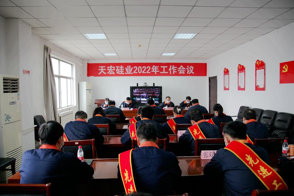 3月22日,天宏硅業(yè)召開(kāi)2022年工作會(huì)議。公司黨委副書(shū)記、總經(jīng)理蘇旭盛作了題為《砥礪前行求生存銳意進(jìn)取謀發(fā)展 為打破僵局轉(zhuǎn)型發(fā)展承壓奮進(jìn)》的工作報(bào)告。公司領(lǐng)導(dǎo)班子成員、副總工程師、中層干部、各車(chē)間部室負(fù)責(zé)人以及公司2021年度先進(jìn)工作者參加會(huì)議。
