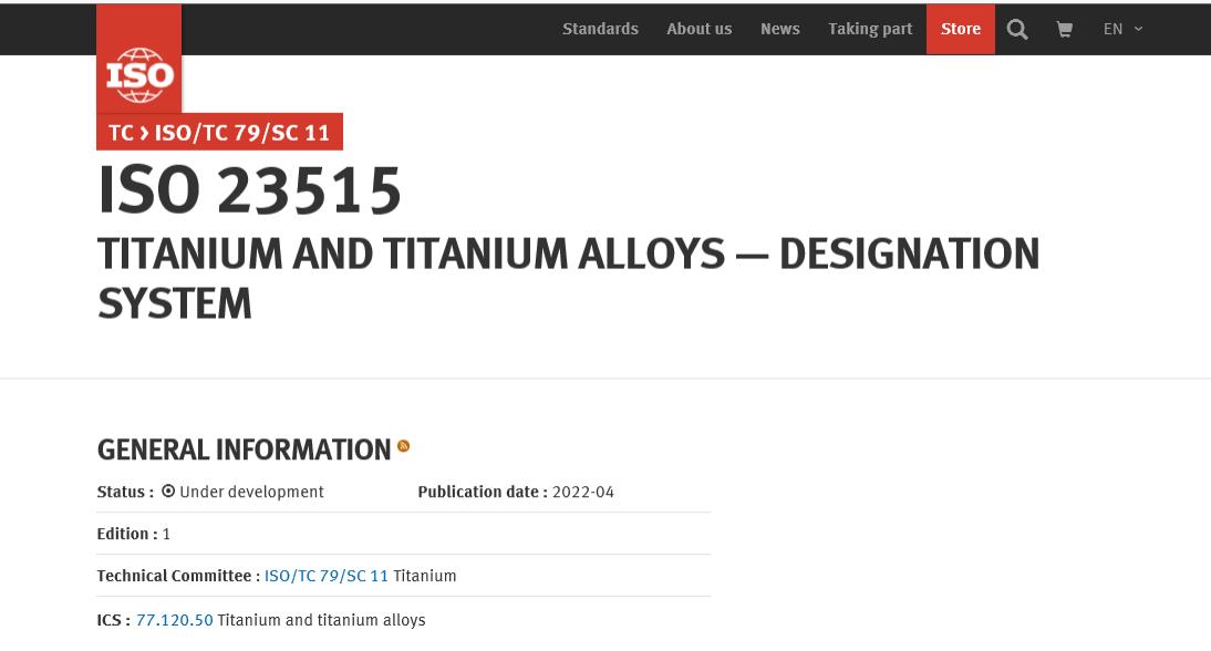 近日,從國際標(biāo)準(zhǔn)化組織官網(wǎng)獲悉,由中國牽頭、寶鈦集團(tuán)主導(dǎo)制定的ISO 23515《Titanium and Titanium alloys—Designation system(鈦及鈦合金命名系統(tǒng))》正式發(fā)布實施,標(biāo)志著我國在鈦領(lǐng)域國際標(biāo)準(zhǔn)化工作中實現(xiàn)歷史性重大突破,填補(bǔ)了國際鈦牌號命名規(guī)則及牌號化學(xué)組分范圍的空白。