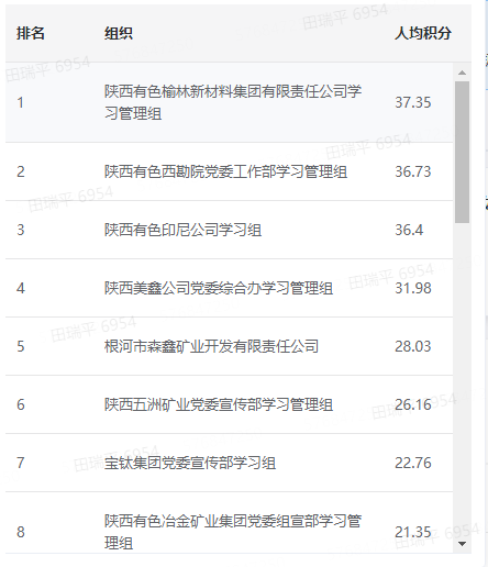 目前,全公司共有注冊學(xué)員613人,學(xué)員參與度、活躍度均在陜西有色金屬集團(tuán)各單位長期處于領(lǐng)先位次,日均積分經(jīng)常位居第一名。截止4月27日,鋁業(yè)分公司孫學(xué)春以總積分57289分,排名全國第108949名,2022年度積分5848分,排名全國第1188名,全公司學(xué)習(xí)強(qiáng)國學(xué)員總積分55000分以上達(dá)136人,黨委宣傳部田瑞平和陽極分公司曹儒鑫挑戰(zhàn)答題先后以2288和2323題順利通關(guān)。
