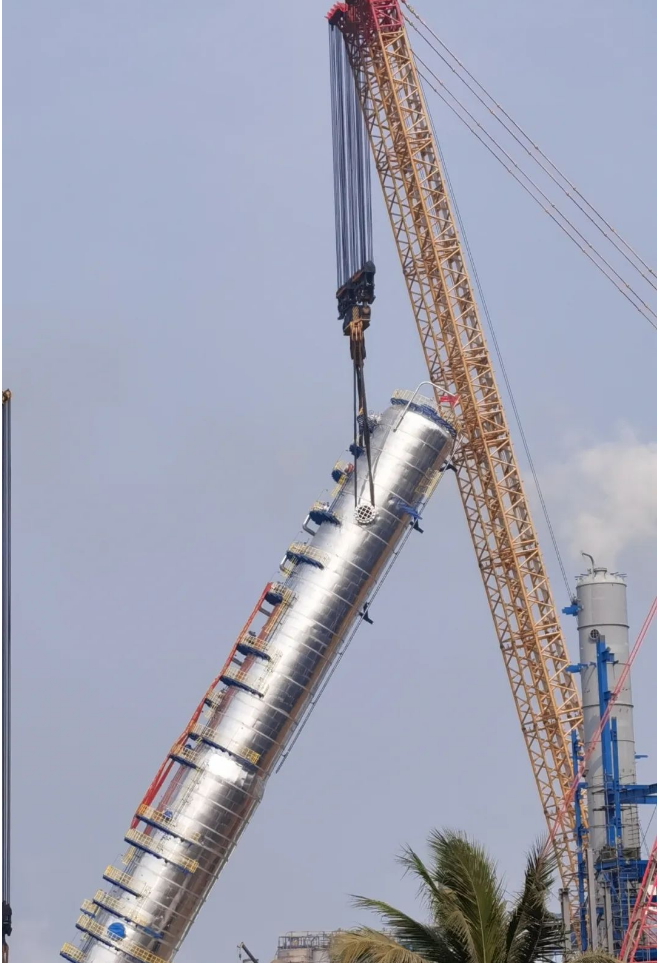 高壓精餾塔是海南逸盛自主PTA工藝包氧化段的核心設(shè)備,寶色股份在該臺(tái)設(shè)備的制造過程中克服諸多困難、攻克了多項(xiàng)技術(shù)難題。該設(shè)備總長80米,直徑達(dá)8.5米,凈重1300噸。寶色股份在經(jīng)過了16個(gè)月的精心制造將當(dāng)前全球最大鈦鋼復(fù)合板精餾塔制作完成并順利交付。該設(shè)備的成功交付并吊裝,標(biāo)志著寶色股份在PTA國產(chǎn)化進(jìn)程中又創(chuàng)造了新的記錄。