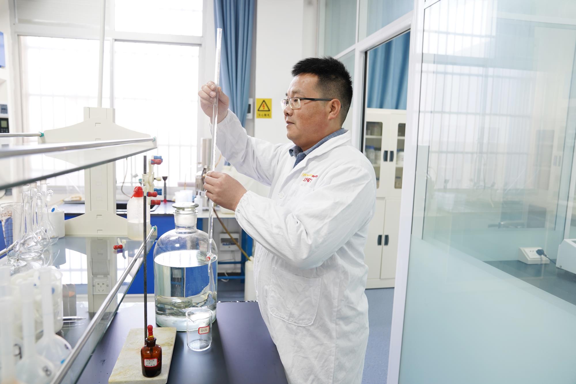 硫酸、鹽酸、氫溴酸……這些都是常用的化驗(yàn)藥品,腐蝕性非常強(qiáng)。多年來(lái),張明明的胳膊、手上不知被濺傷了多少次。每逢炎炎夏日,電爐,管式爐,烘箱……這些電器使工作環(huán)境成了烤人的“煉鋼爐”。在這樣的高溫環(huán)境下,他不怕苦,不怕累,始終堅(jiān)守在自己的崗位上,常常汗流浹背做化驗(yàn)做分析。