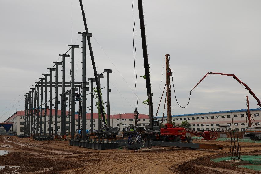 來到鑄軋車間,外圍“一切風(fēng)險皆可預(yù)控,一切事故皆可避免”“安全在心中,時刻敲警鐘”等安全標(biāo)語格外醒目。走進(jìn)施工現(xiàn)場,廣闊平整的場地被防塵網(wǎng)遮擋,兩名工人認(rèn)真清洗著一輛即將出廠的水泥罐車,壓路機、鏟車、裝載車、打樁機各類工藝車輛往來穿梭,有序作業(yè)。陜西華山建設(shè)集團(tuán)有限公司技術(shù)負(fù)責(zé)人劉永哲介紹到“我們現(xiàn)在正在進(jìn)行設(shè)備基礎(chǔ)樁基施工,按照時間節(jié)點,計劃本月20號開始吊裝鋼結(jié)構(gòu)”。
