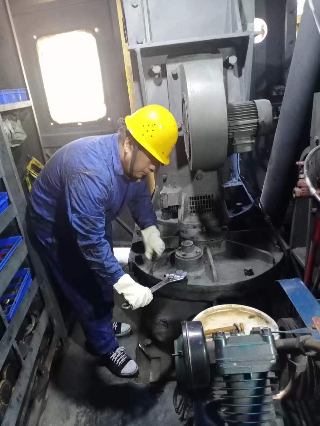 2017年,70#電鏟滾筒底座變形,隨時(shí)會造成電鏟損壞,若是得不到及時(shí)處理就會造成電鏟更加嚴(yán)重的次生損傷。賈煥煥得知這個(gè)情況后,立即聯(lián)系車間領(lǐng)導(dǎo),協(xié)同技術(shù)組共同探討解決方案,最終決定采用鋼板對其底座進(jìn)行加固處理。由于底座處空間過小,最多只能容納兩個(gè)人,自己又對底座構(gòu)造比較了解,他便毫不猶豫地鉆了進(jìn)去,配合焊工作業(yè)。當(dāng)焊工開始工作時(shí),濃煙滾滾,即使戴著防護(hù)眼鏡和口罩,也嗆得眼淚直流,只能干一小會兒,就要從底座里爬出來,讓作業(yè)空間里的煙霧排一排,然后鉆進(jìn)去再繼續(xù)接著焊。由于加固底座工作量較大,賈煥煥主動加班,力爭盡快修復(fù),投入生產(chǎn),這一干就是36個(gè)小時(shí)。完工后,賈煥煥從電鏟底盤處緩緩鉆出來,只見他滿臉、滿身黑油,摘下防護(hù)眼鏡,眼部和周圍的膚色形成了鮮明的對比,而且眼睛被煙熏的紅腫了,眼淚直流,最終比計(jì)劃提前24小時(shí)完成了底盤修復(fù)工作,在對其他部位檢查完好后,立馬就開始了正常的安全生產(chǎn),確保鏟裝作業(yè)環(huán)節(jié)有序高效。