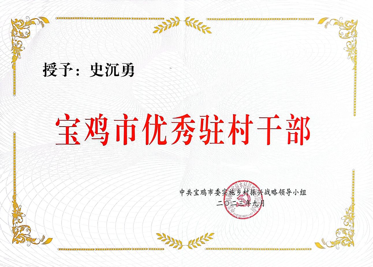 史沉勇積極助推陜西有色金屬集團幫扶項目“金秋助學”常態(tài)化、制度化,建立了《冉家溝金秋助學管理辦法》,為考入大專以上的31名學生爭取并發(fā)放助學金4.6萬元,充分彰顯了幫扶的力度和溫度,為樹立學習榜樣,涵養(yǎng)文明鄉(xiāng)風發(fā)揮了積極作用。看著大學生們一個個雀躍的身影,史沉勇更加明白了黨建引領對產(chǎn)業(yè)發(fā)展的重要作用。在鎮(zhèn)黨委的領導下,他積極做好冉家溝黨員學習教育工作,充分發(fā)揮了黨員在“五大振興”工作中的引領帶動作用;編制基層黨組織建設制度匯編,規(guī)范村黨支部的決策、議事、組織、宣傳等工作執(zhí)行程序,充分發(fā)揮黨支部的戰(zhàn)斗堡壘作用;扎實開展主題黨日活動,提高村級黨組織的戰(zhàn)斗力、凝聚力和創(chuàng)造力,不斷提升黨支部發(fā)現(xiàn)問題、解決問題的能力,推進村級經(jīng)濟和社會保障各項工作全面發(fā)展。深入基層詮釋干部作風,真情幫扶彰顯黨員本色。在史沉勇和村“四支隊伍”的共同努力下,如今的冉家溝村產(chǎn)業(yè)發(fā)展穩(wěn)步前進,環(huán)境面貌煥然一新,民生保障更加堅實有力,多次代表寶雞市、千陽縣接受省級定點幫扶實績考核,受到充分肯定。史沉勇也在扎根基層中練就一身本領,被省委組織部評為2022年度省級考核“優(yōu)秀第一書記”。