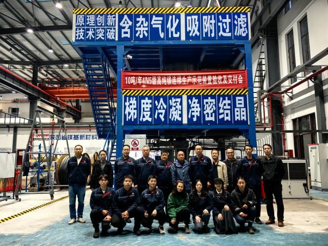 近年來,裝備科技公司聯(lián)合西安交通大學(xué)單智偉教授研究團隊,經(jīng)過多年潛心研究和科研攻關(guān),基于氣態(tài)原子選擇性分離來除雜的新思路,吸收消化“含雜氣化,梯度冷凝,吸附過濾,凈密結(jié)晶”系列技術(shù),研發(fā)制造了“10噸/年Mg99995級高純鎂半連續(xù)化生產(chǎn)示范裝置”,以期實現(xiàn)99.995%高純鎂的低成本規(guī)?;€(wěn)定制備。2020年,開始籌劃并進行相應(yīng)原理技術(shù)攻關(guān)、驗證;2022年,正式著手工程方案設(shè)計,并歷經(jīng)了八輪論證評審;今年1月,該示范裝置開始進行設(shè)備制造,8月進入駐基地安裝、調(diào)試,11月正式交付。